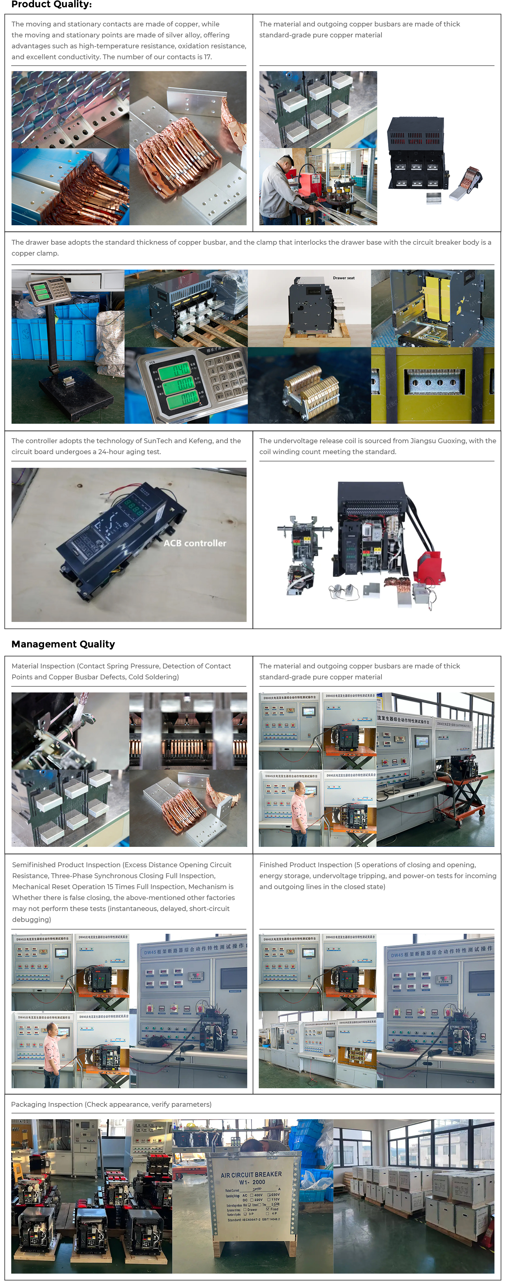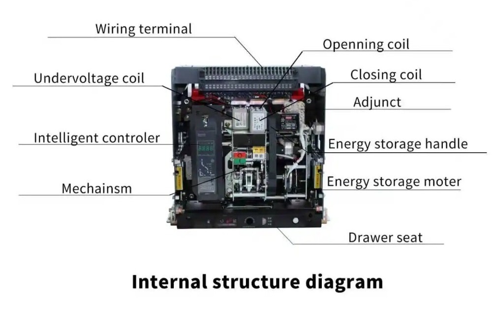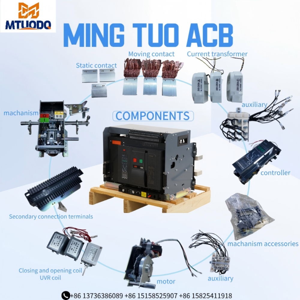 Lorsque le produit est à l'état fermé et sous tension, s'il y a surcharge ou court-circuit, sous-tension ou perte de phase dans le circuit, le transformateur de courant dans l'ACB détectera le signal de courant, qui sera transmis au contrôleur. Le contrôleur enverra ensuite une commande au mécanisme pour déclencher, provoquant la séparation et la déconnexion des contacts dynamiques et statiques, et le produit s'ouvrira, réalisant ainsi la fonction de protection de la charge backend.
