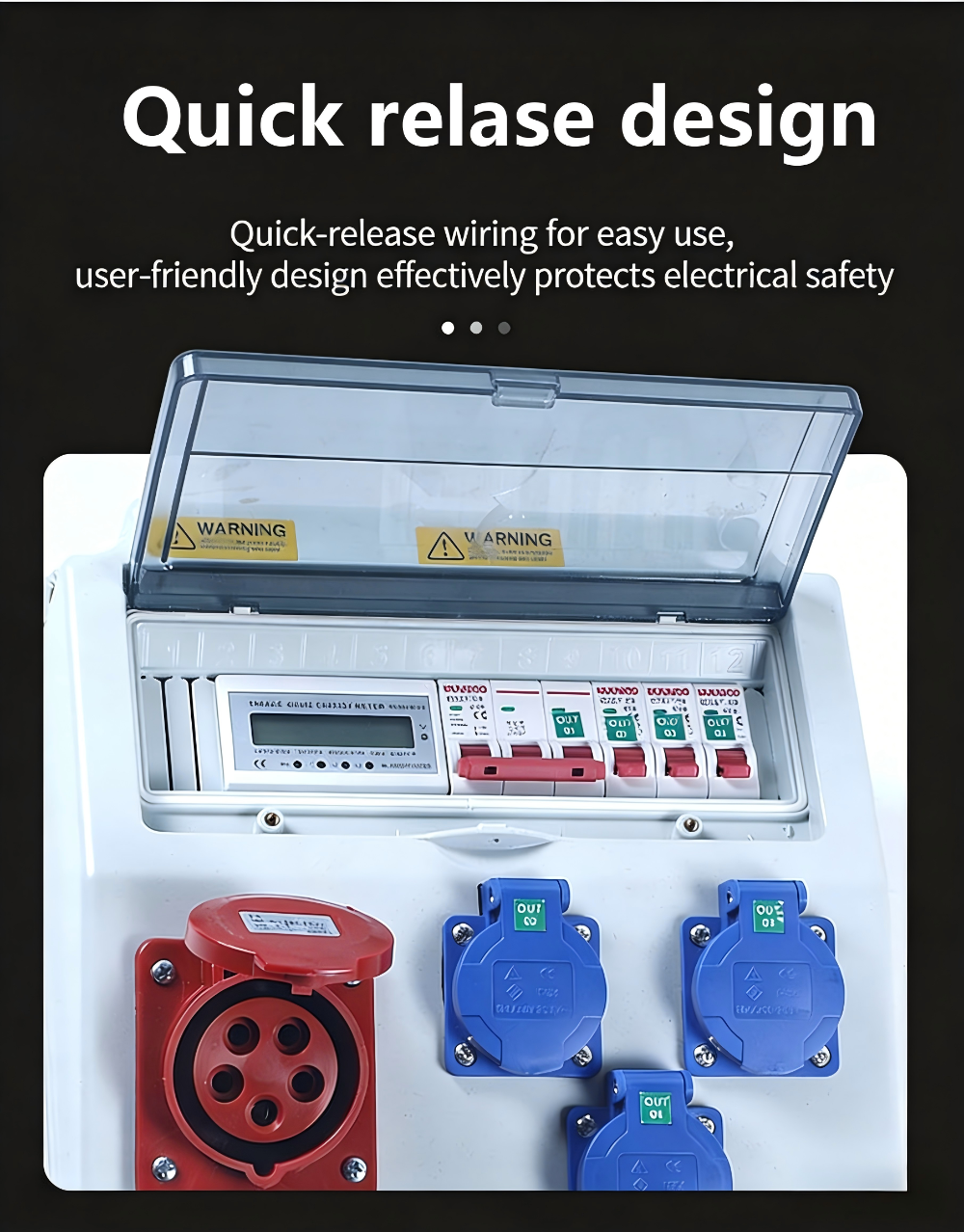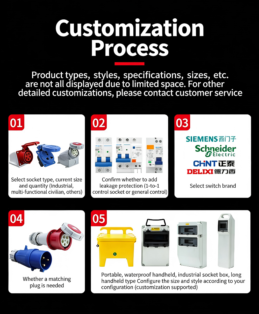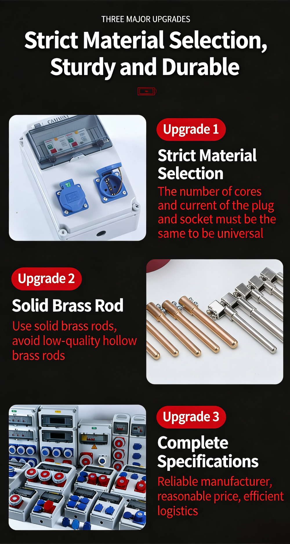 Les boîtiers de prises étanches extérieurs sont utilisés dans les chantiers de construction extérieurs, les usines et les endroits ayant des exigences élevées en matière d'étanchéité, d'imperméabilisation et de prévention de la poussière. Ils peuvent fournir une alimentation temporaire aux charges sur le chantier de construction, ce qui rend leur fourniture pratique et portable. Ils sont équivalents à une source d’énergie mobile et peuvent produire de l’électricité triphasée et biphasée. Ils peuvent être personnalisés pour fournir diverses sources d'alimentation et prises de courant de différents styles et formes en fonction des besoins réels du chantier de construction.