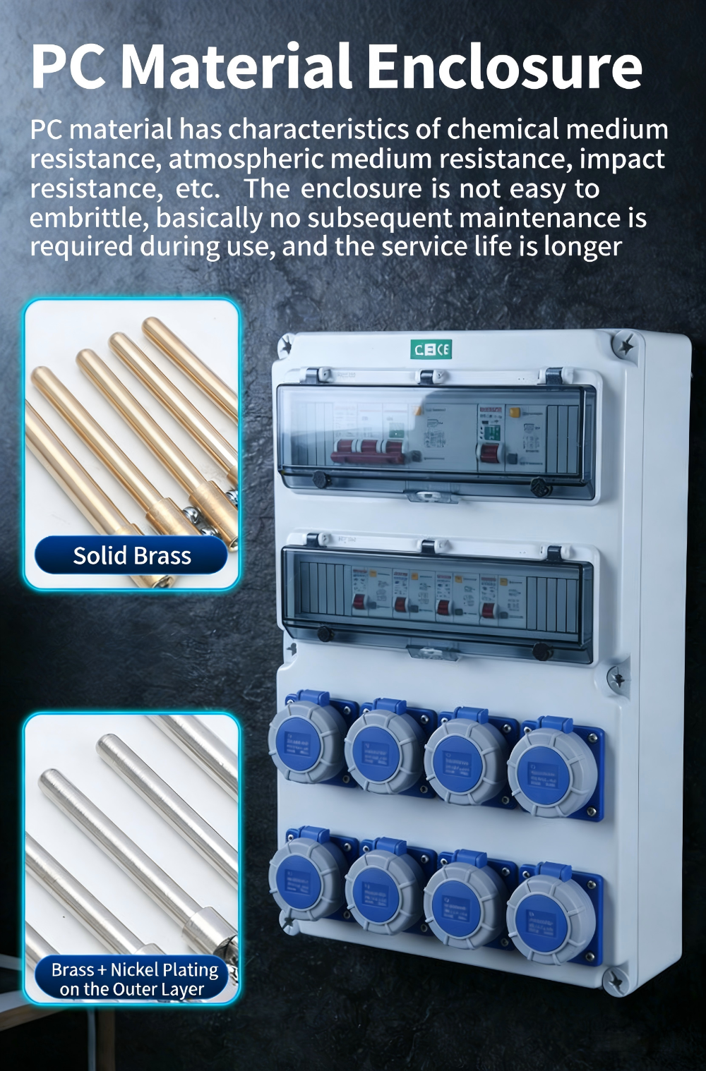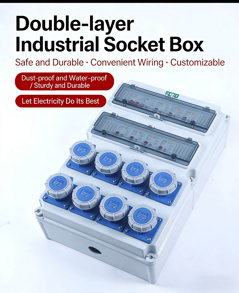 Les boîtiers de prises étanches extérieurs sont utilisés dans les chantiers de construction extérieurs, les usines et les endroits ayant des exigences élevées en matière d'étanchéité, d'imperméabilisation et de prévention de la poussière. Ils peuvent fournir une alimentation temporaire aux charges sur le chantier de construction, ce qui rend leur fourniture pratique et portable. Ils sont équivalents à une source d’énergie mobile et peuvent produire de l’électricité triphasée et biphasée. Ils peuvent être personnalisés pour fournir diverses sources d'alimentation et prises de courant de différents styles et formes en fonction des besoins réels du chantier de construction.