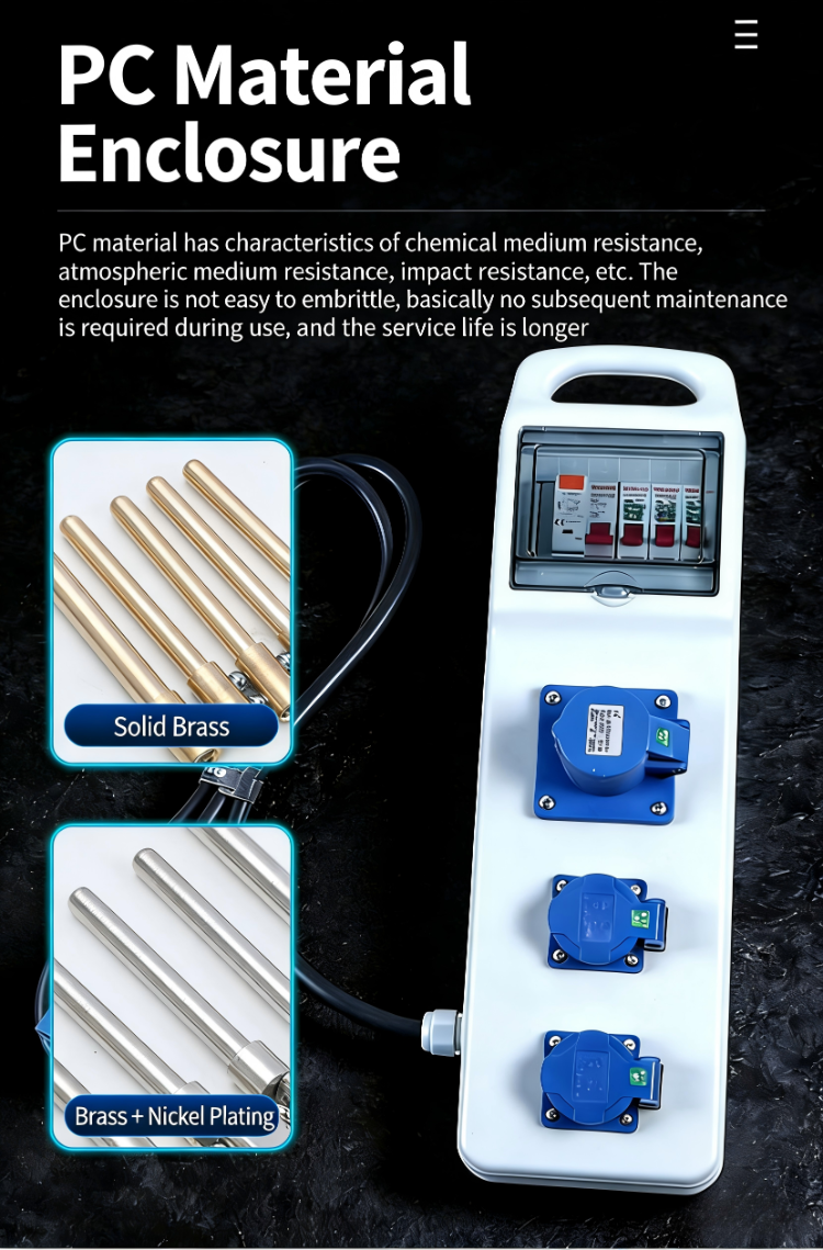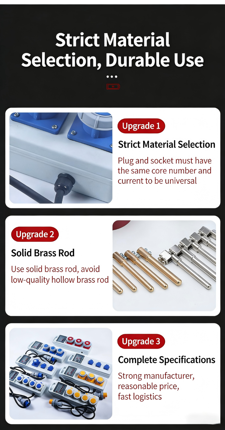 Les boîtiers de prises étanches extérieurs sont utilisés dans les chantiers de construction extérieurs, les usines et les endroits ayant des exigences élevées en matière d'étanchéité, d'imperméabilisation et de prévention de la poussière. Ils peuvent fournir une alimentation temporaire aux charges sur le chantier de construction, ce qui rend leur fourniture pratique et portable. Ils sont équivalents à une source d’énergie mobile et peuvent produire de l’électricité triphasée et biphasée. Ils peuvent être personnalisés pour fournir diverses sources d'alimentation et prises de courant de différents styles et formes en fonction des besoins réels du chantier de construction.