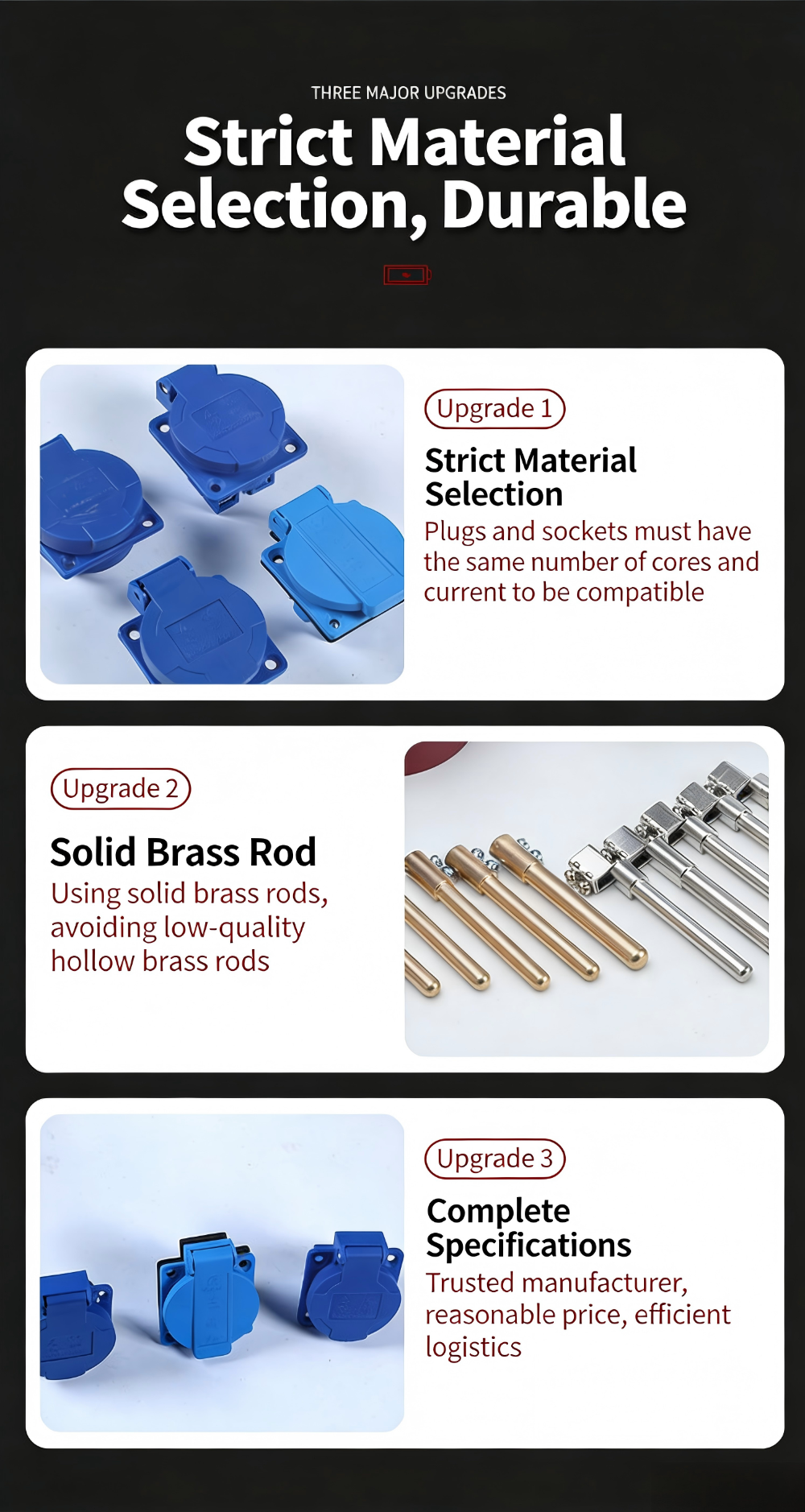 Les boîtiers de prises étanches extérieurs sont utilisés dans les chantiers de construction extérieurs, les usines et les endroits ayant des exigences élevées en matière d'étanchéité, d'imperméabilisation et de prévention de la poussière. Ils peuvent fournir une alimentation temporaire aux charges sur le chantier de construction, ce qui rend leur fourniture pratique et portable. Ils sont équivalents à une source d’énergie mobile et peuvent produire de l’électricité triphasée et biphasée. Ils peuvent être personnalisés pour fournir diverses sources d'alimentation et prises de courant de différents styles et formes en fonction des besoins réels du chantier de construction.