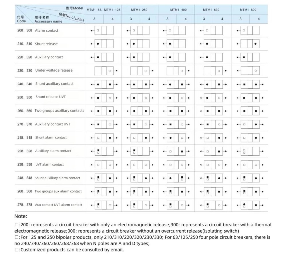 | Type | MTM1-63 | MTM1-125 | MTM1-250 | |||||