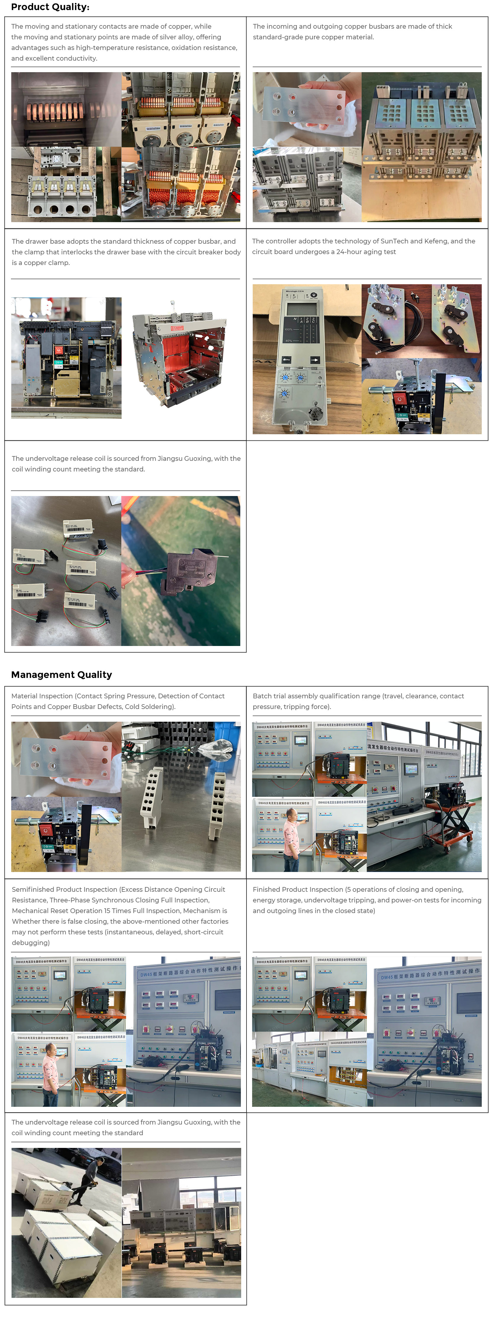 Un disjoncteur à air (ACB) fonctionne en interrompant automatiquement le flux de courant lors de la détection d'une surcharge ou d'un court-circuit. Dans des conditions normales, ses contacts principaux restent fermés pour permettre une circulation de courant sans obstruction. Lorsqu'une surintensité soutenue se produit, l'élément thermique se déforme à cause de l'accumulation de chaleur, déclenchant le mécanisme de déclenchement. Lors d'événements de court-circuit soudains, la bobine du solénoïde produit une force magnétique instantanée pour activer le mécanisme de déclenchement. Cette action sépare rapidement les contacts principaux, générant un arc électrique puissant qui est immédiatement dirigé vers la chambre d’extinction d’arc. Là, l'arc est divisé, refroidi et éteint, déconnectant le circuit en toute sécurité et évitant d'endommager le système.