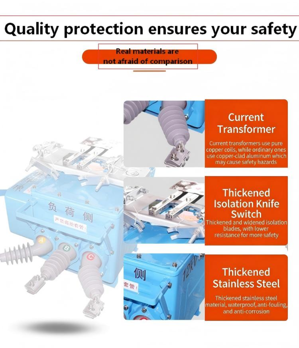 En cas de surintensité ou de court-circuit dans la ligne sortante du circuit, le transformateur de courant peut détecter le signal de courant qui est transmis au contrôleur. Le contrôleur émet une commande pour déclencher le mécanisme, ce qui entraîne la séparation des contacts dynamiques et statiques à l'intérieur du tube à vide, réalisant ainsi la déconnexion et la coupure du circuit, jouant un rôle de protection.