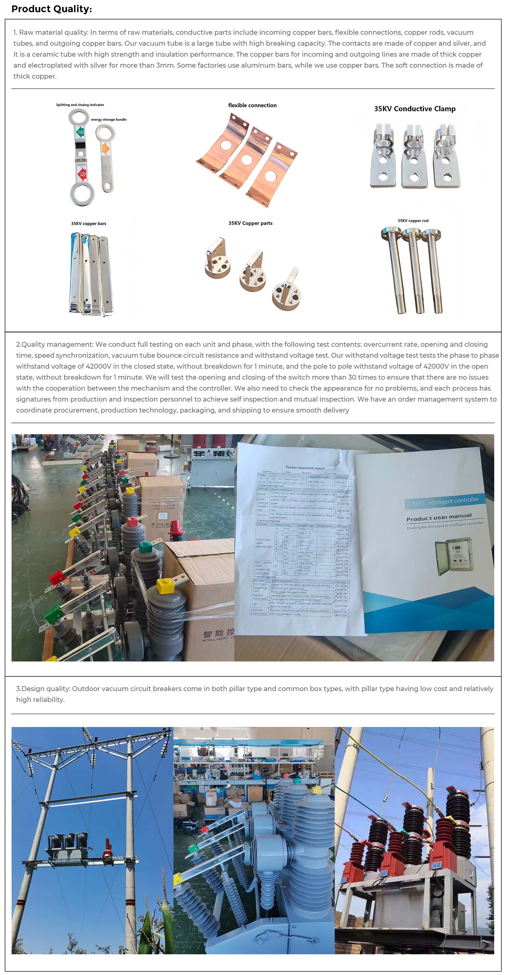 Lorsqu'il y a une surintensité ou un court-circuit dans la ligne sortante du circuit, le transformateur de courant peut détecter le signal de courant, qui est transmis au contrôleur. Le contrôleur émet une commande pour déclencher le mécanisme, qui entraîne la séparation des contacts dynamiques et statiques à l'intérieur du tube à vide, réalisant ainsi la déconnexion et la coupure du circuit, jouant ainsi un rôle protecteur.