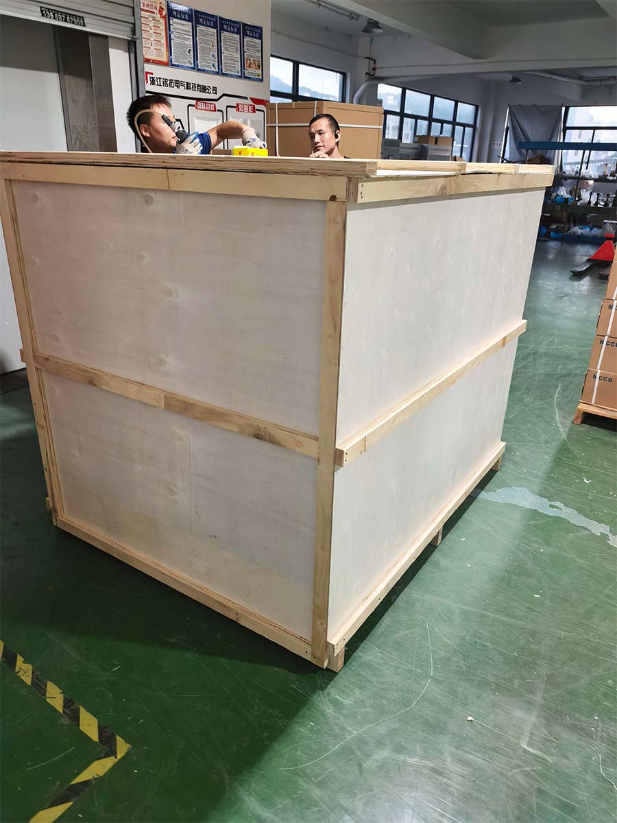Pour assurer la sécurité du transport, nos produits électriques sont exportés dans des caisses en bois renforcé. Les caisses subissent un traitement thermique et portent la marque ISPM-15, permettant un dédouanement rapide. La conception de la base surélevée facilite le fonctionnement du chariot élévateur, tandis que la fixation interne absorbant les chocs garantit que les produits arrivent intacts. Toutes les caisses extérieures sont clairement étiquetées et conformes aux normes logistiques internationales.